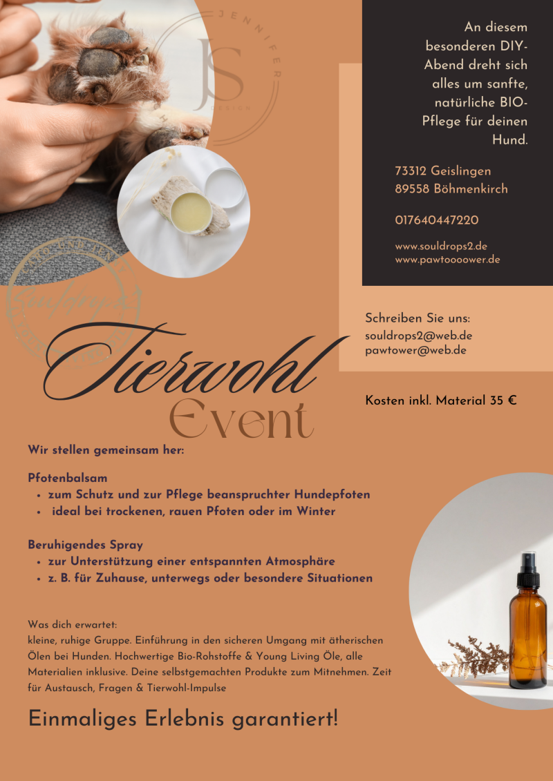 Die Öl- Sprechstunde findet einmal im Monat in den Räumlichkeiten von Paw Toooower, zusammen mit Souldrops² und Tierheilpraktikerin Sabrina Schrauf statt.